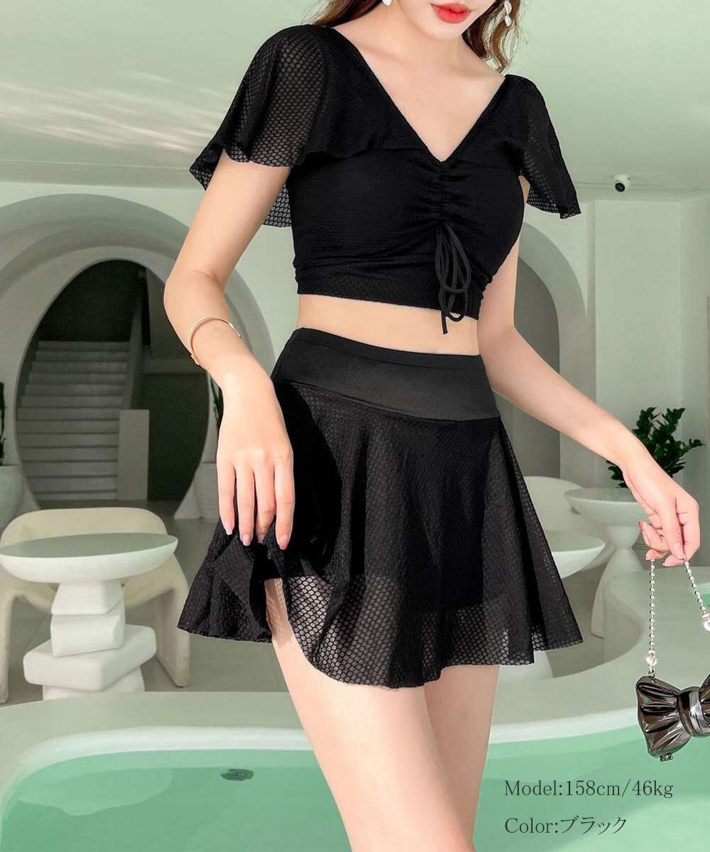 魅力的なレースアップトップスとミニスカートの水着2点セットが登場