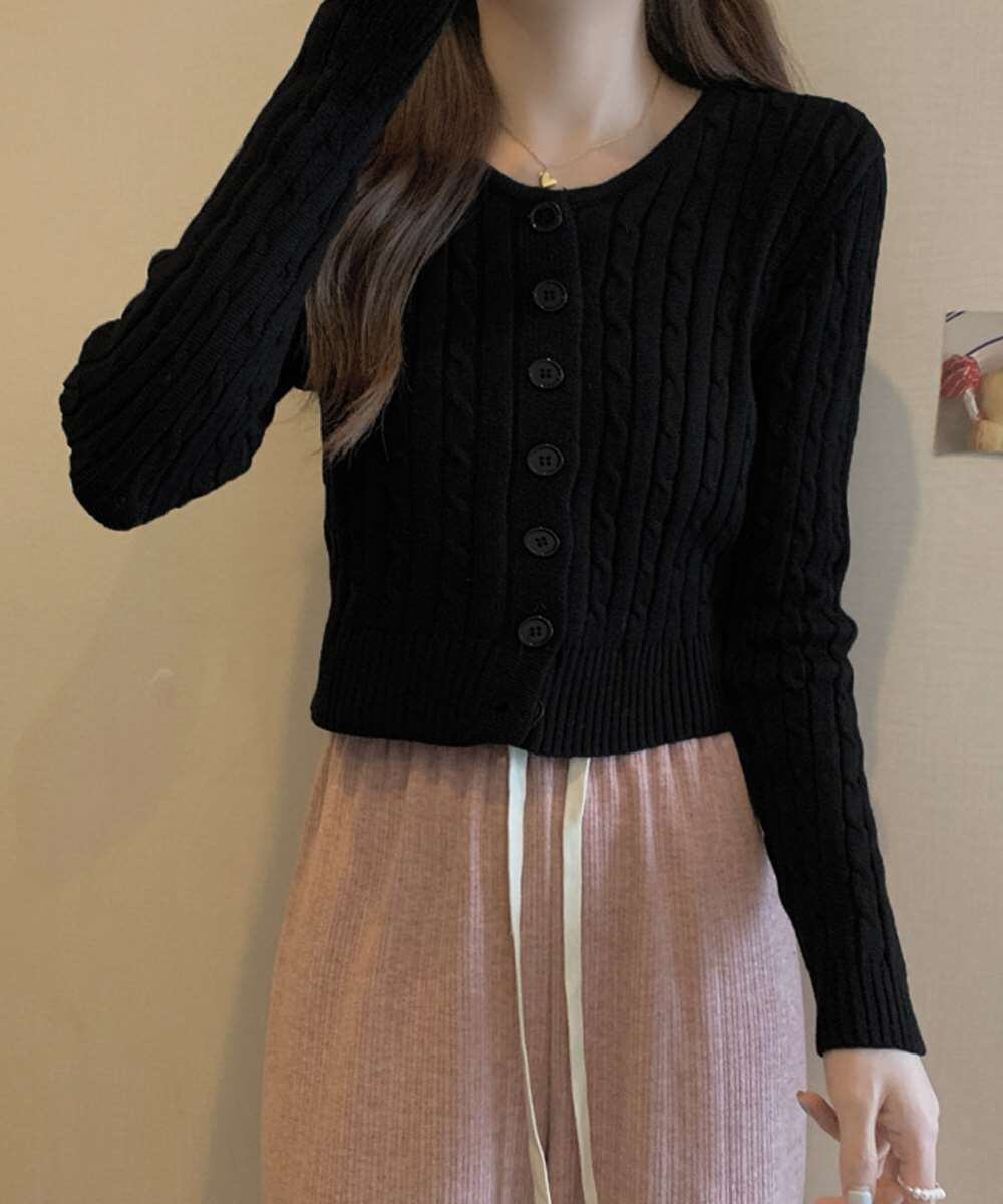 キーワード:ニットウェア 長袖 オフィスカジュアル 韓国風羽織り