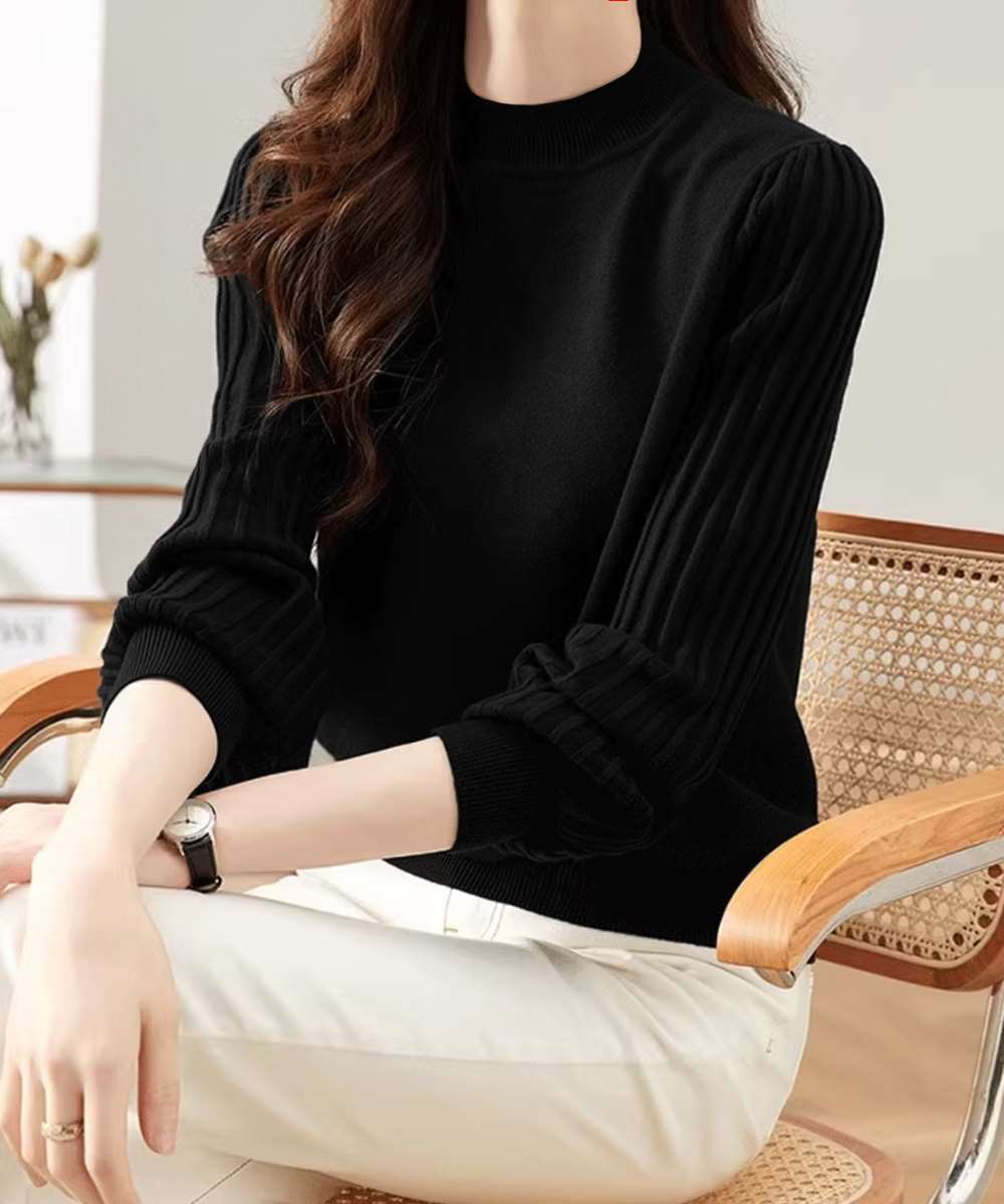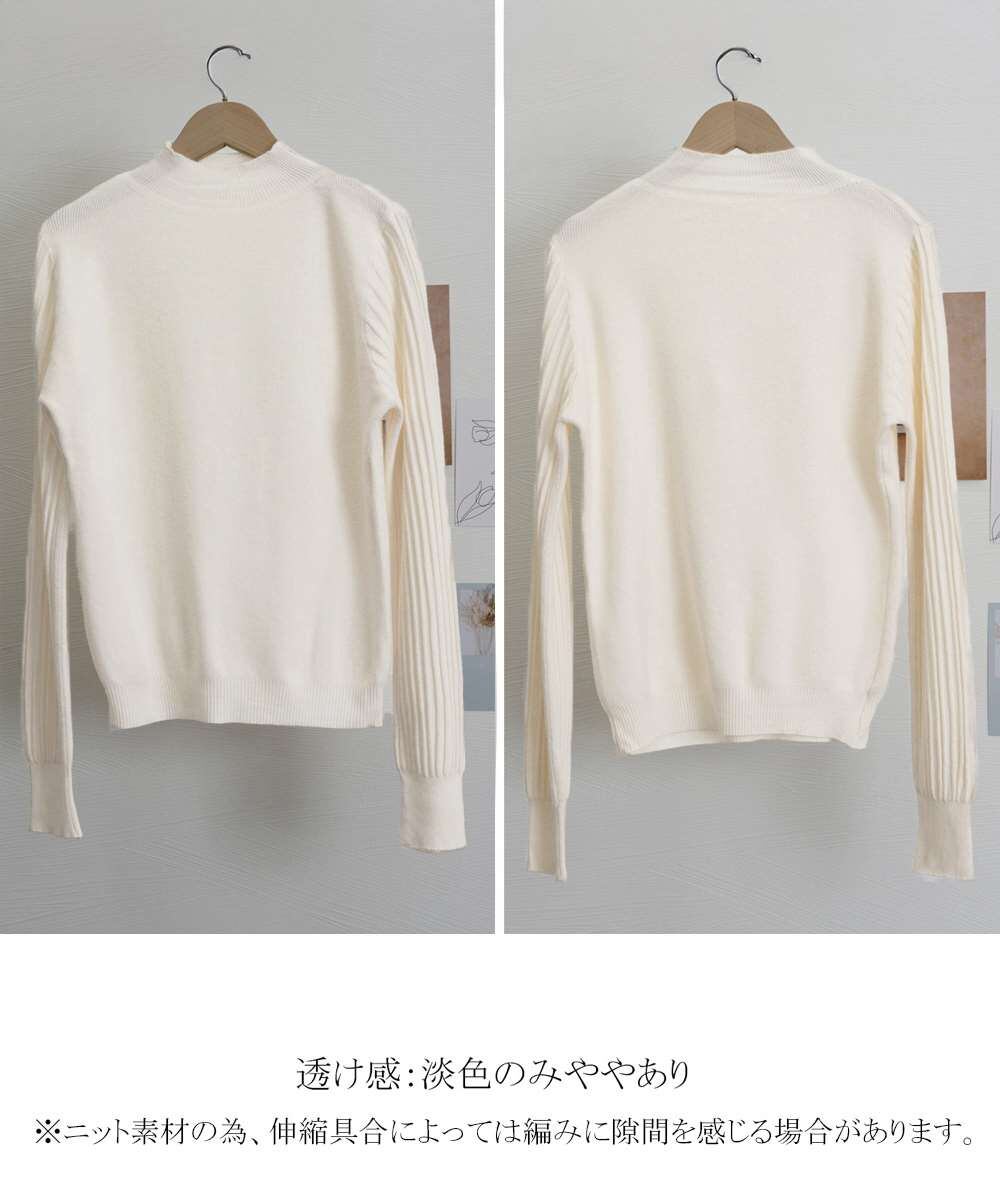 首元を包むプチハイネック仕様で、シンプルながらエレガントな印象のニットトップス