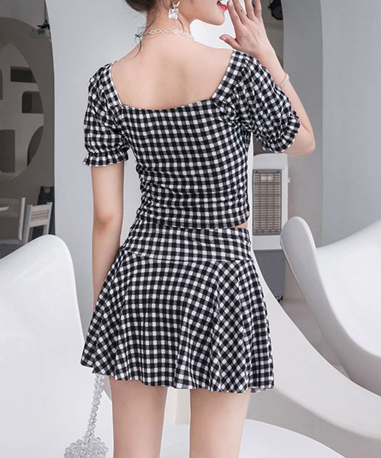 ギンガムチェックが大人ガーリーな印象を与えるセパレート水着