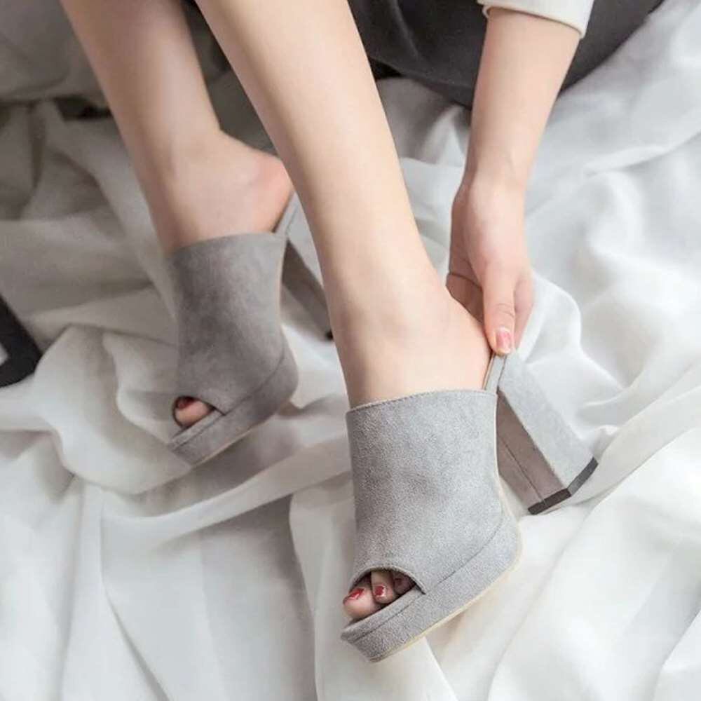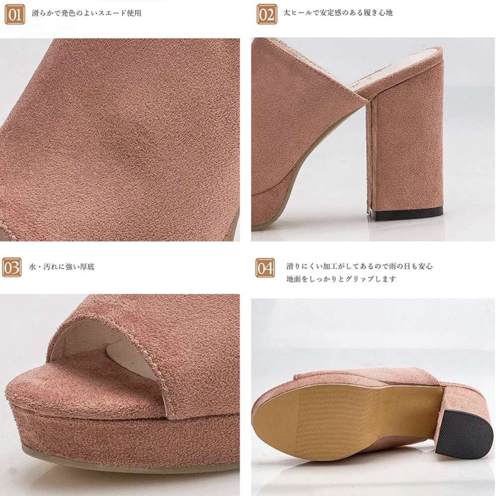 普段使いでもオフィシャルシーンでも使える太ヒールのスエード調サンダル