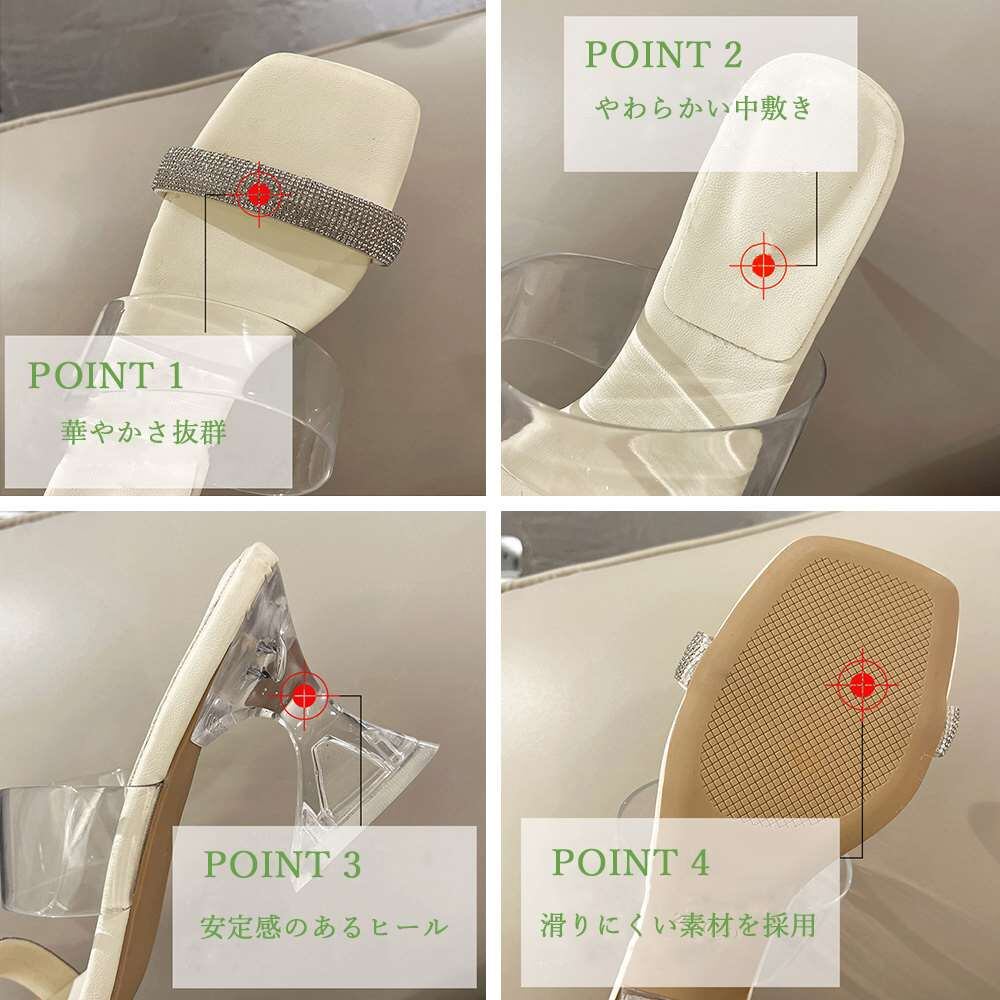 ヒールもデザイン性があり、履くだけで注目されちゃうこと間違いなしな今季大注目のクリアヒールサンダルです