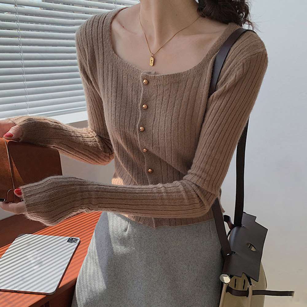 キーワード:タイトニット前開き ニットウェアレトロ ニットトップス羽織