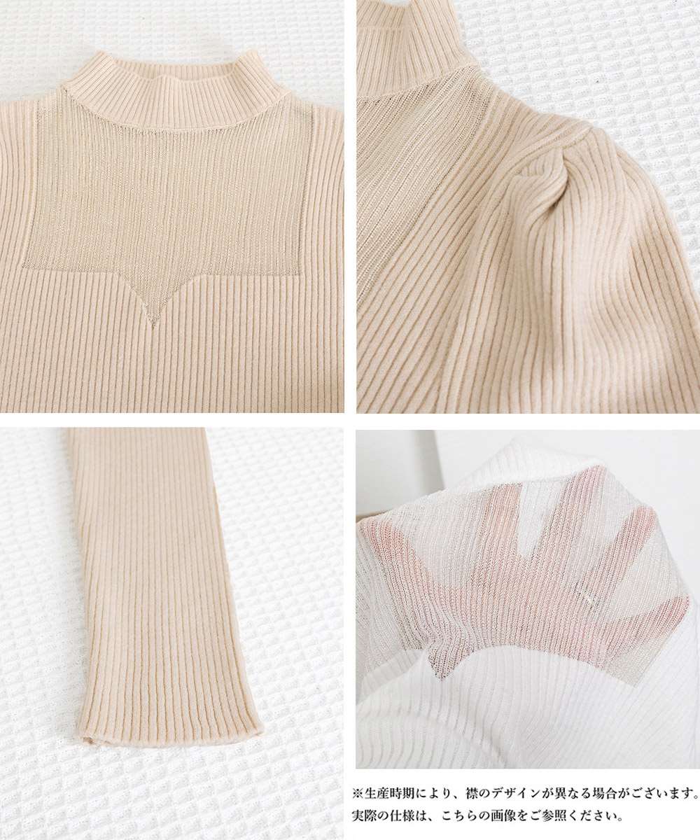 バストに巧みなシースルー切替デザインが施されたニットトップス