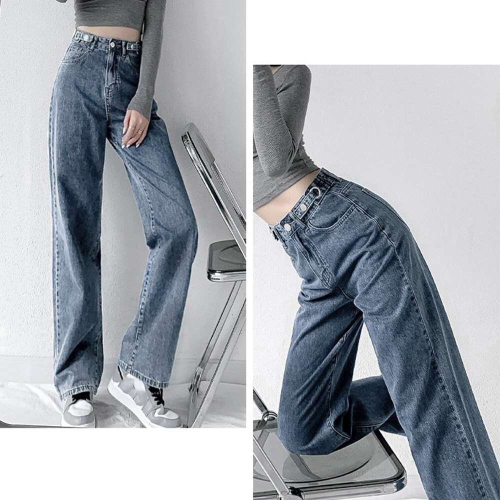 ウエストのサイズ調節が可能なハイウエストデニムパンツ