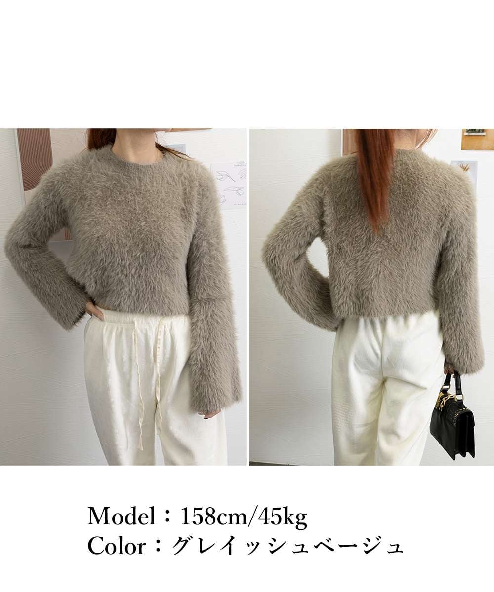 柔らかくふわふわとした心地よい肌触りが魅力の、毛足の長いシャギーニット