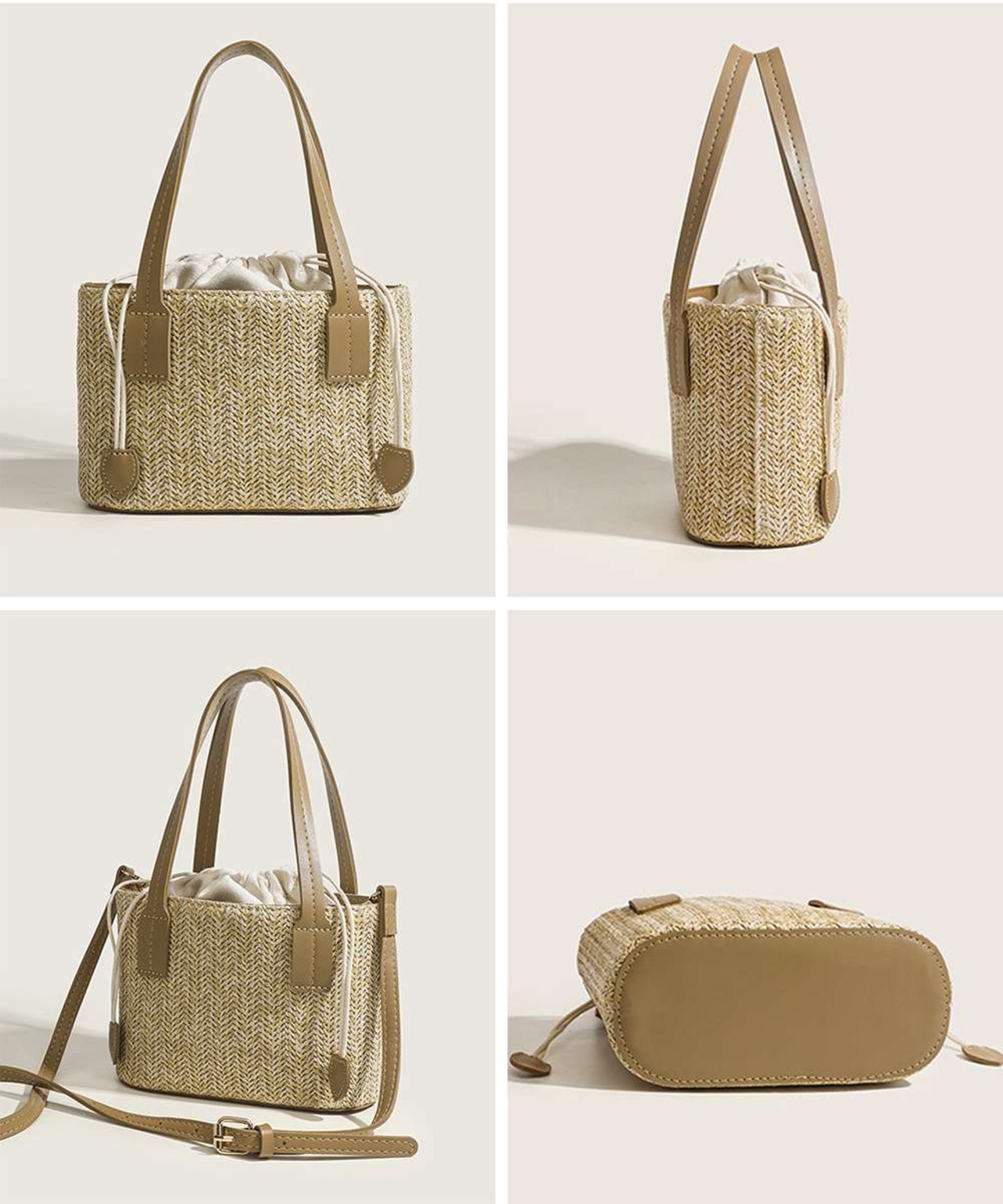 ミニスクエアバッグ 2WAY 草編み巾着袋バッグ トートバッグ 斜めがけ 浴衣小物 麦わらかばん 花火大会 手提げバッグ