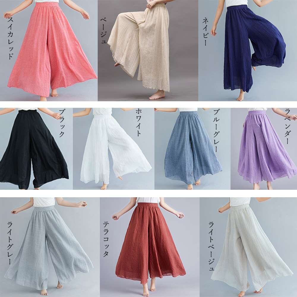薄手の柔らかな綿麻素材で仕上げたボリュームたっぷりのワイドパンツ
