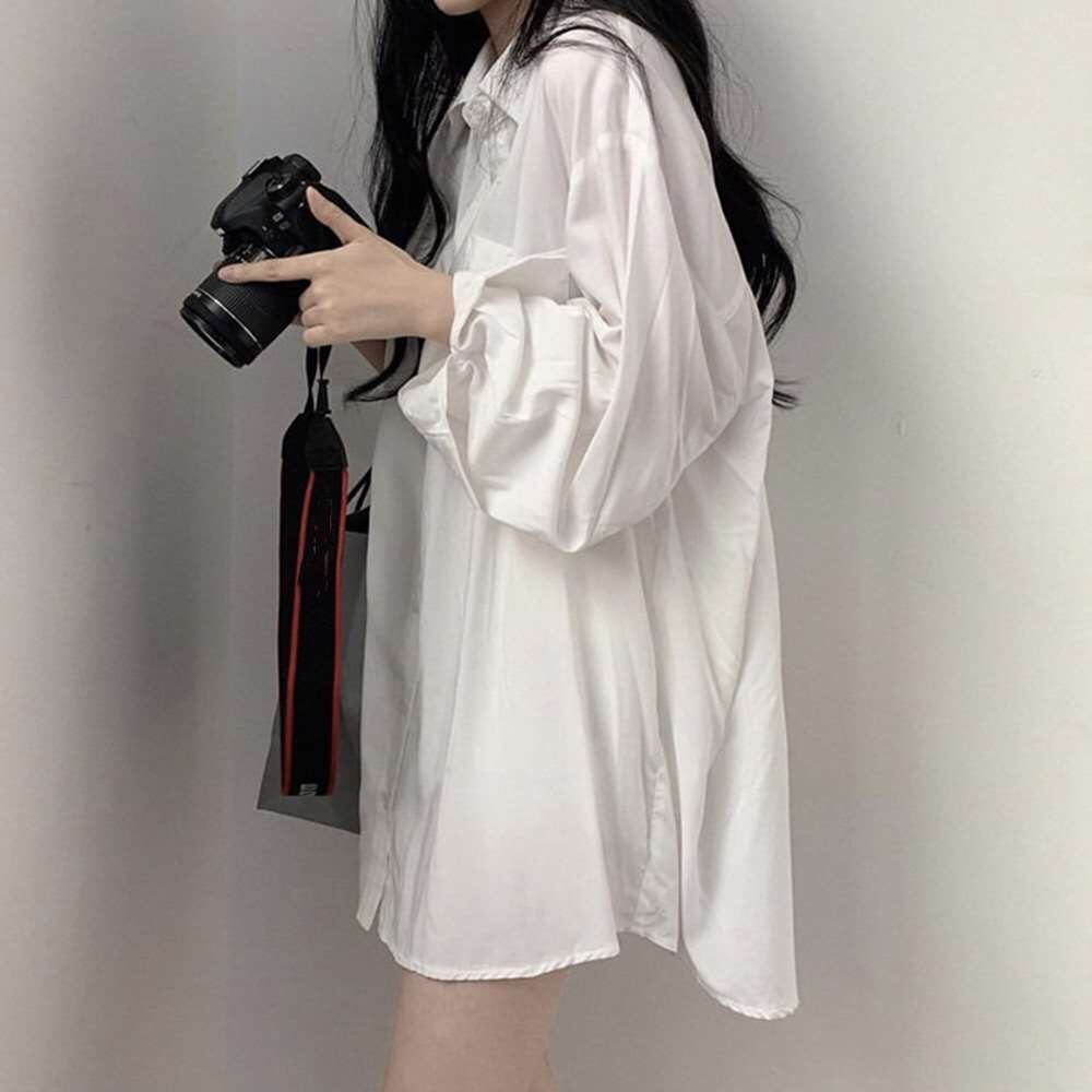 ブラウス トップス 長袖 レディース ロング シャツ カーディガン 胸ポケット付き オーバー