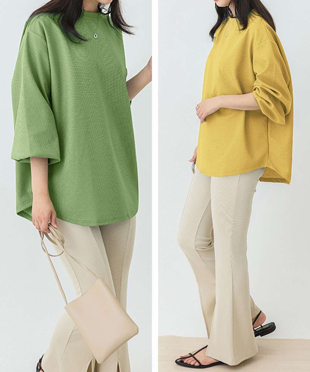 ゆったりとしたシルエットで体型をさりげなくカバーし、気になる腰まわりも自然に隠してくれます