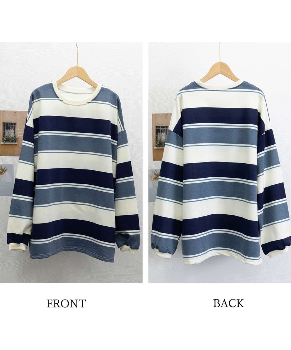 大人っぽいボーダーデザインとボリューム感のあるトレーナー
