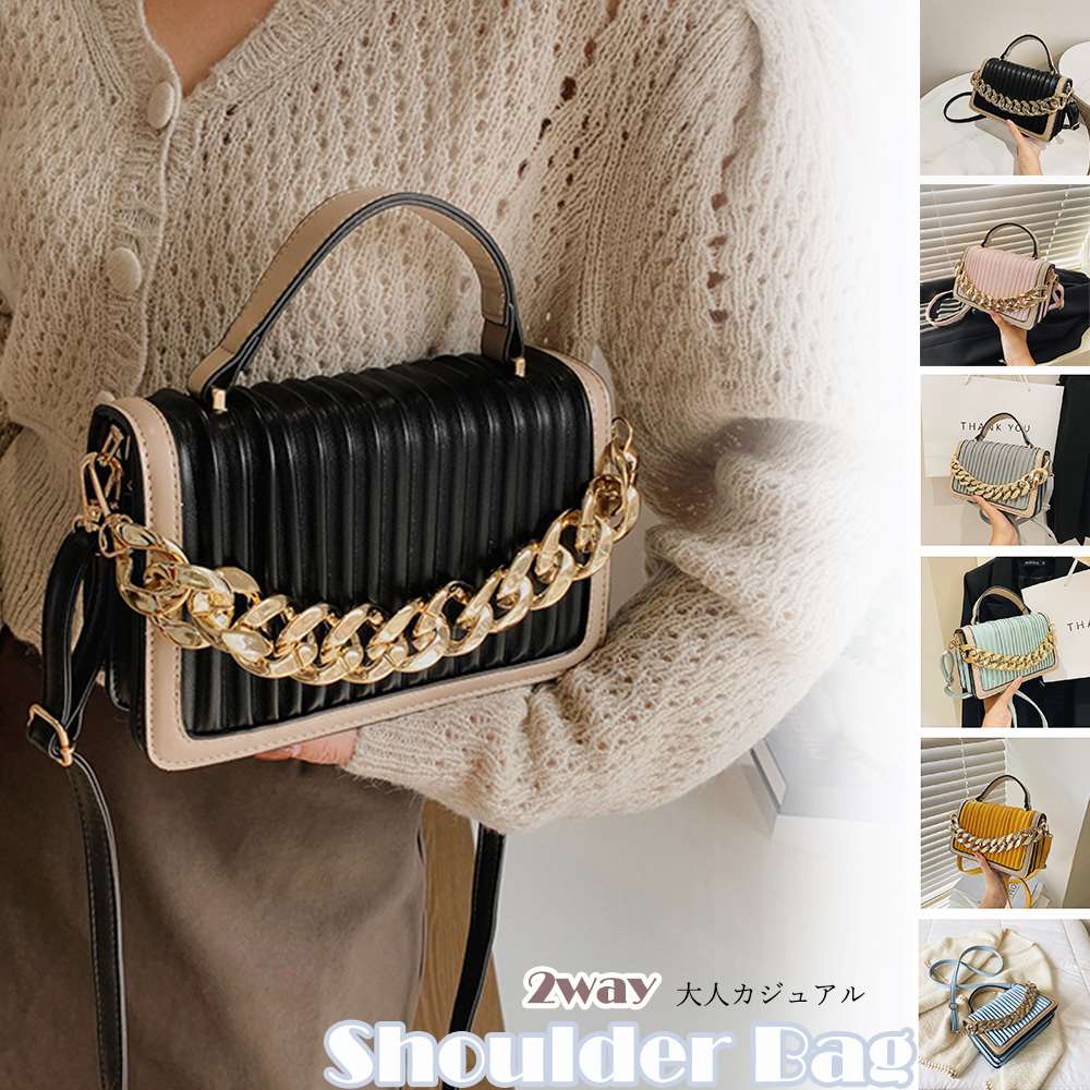 フェイクレザーとゴールドチェーンで仕上げた2wayミニショルダーバッグです