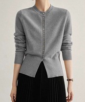 前開きデザインで着脱が簡単なうえ、重ね着スタイルにも最適です。