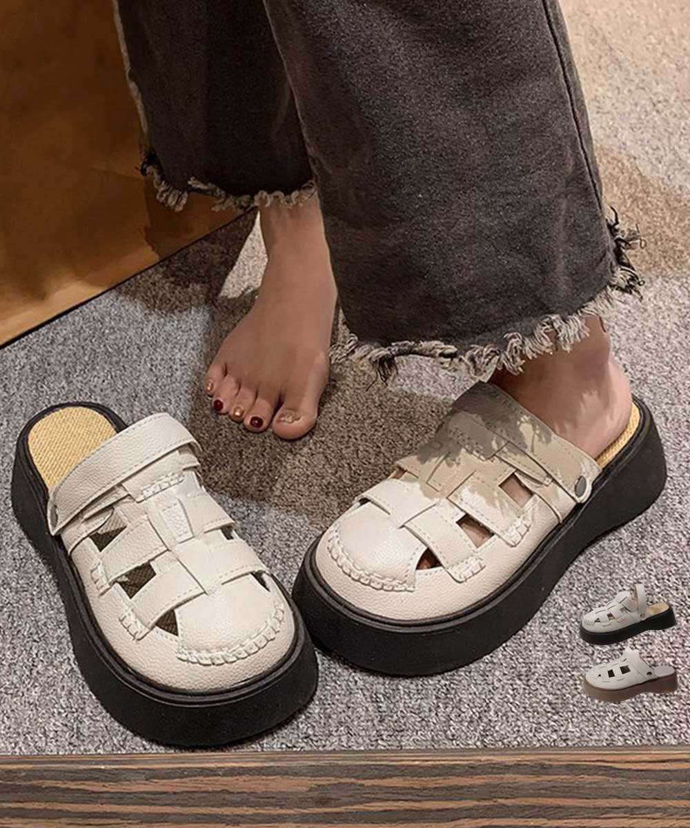 編み込み風のデザインが施されており、カジュアルながらも個性的な印象を与える2WAY厚底サンダル