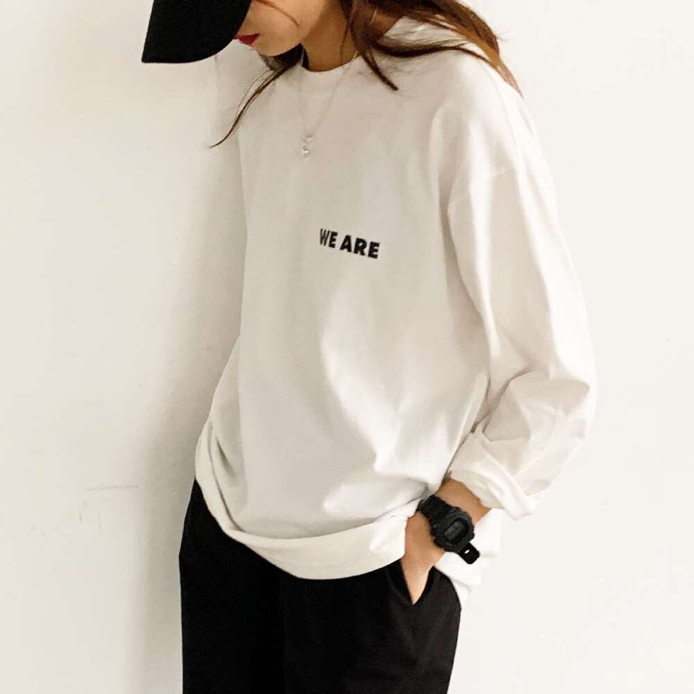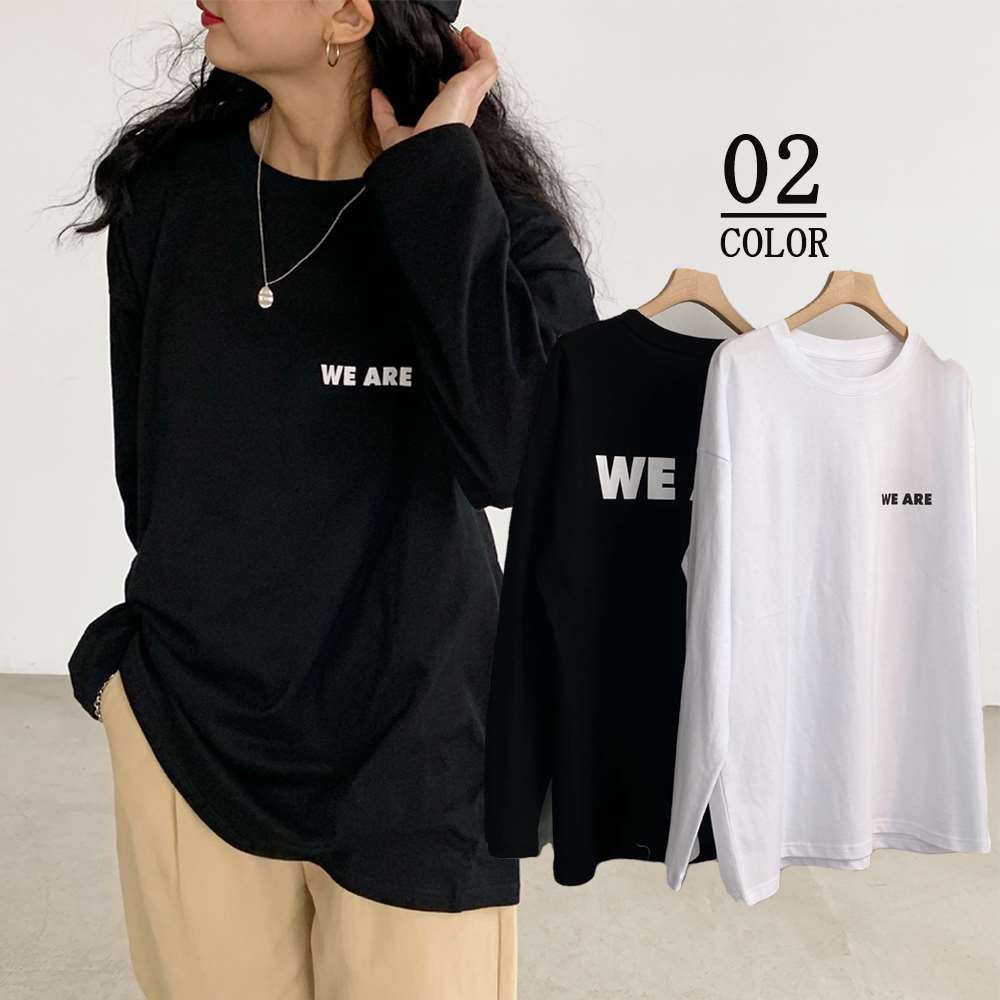 Tシャツ レディース トップス 長袖 カットソー 韓国 英字ロゴ 体型カバー ゆったり
