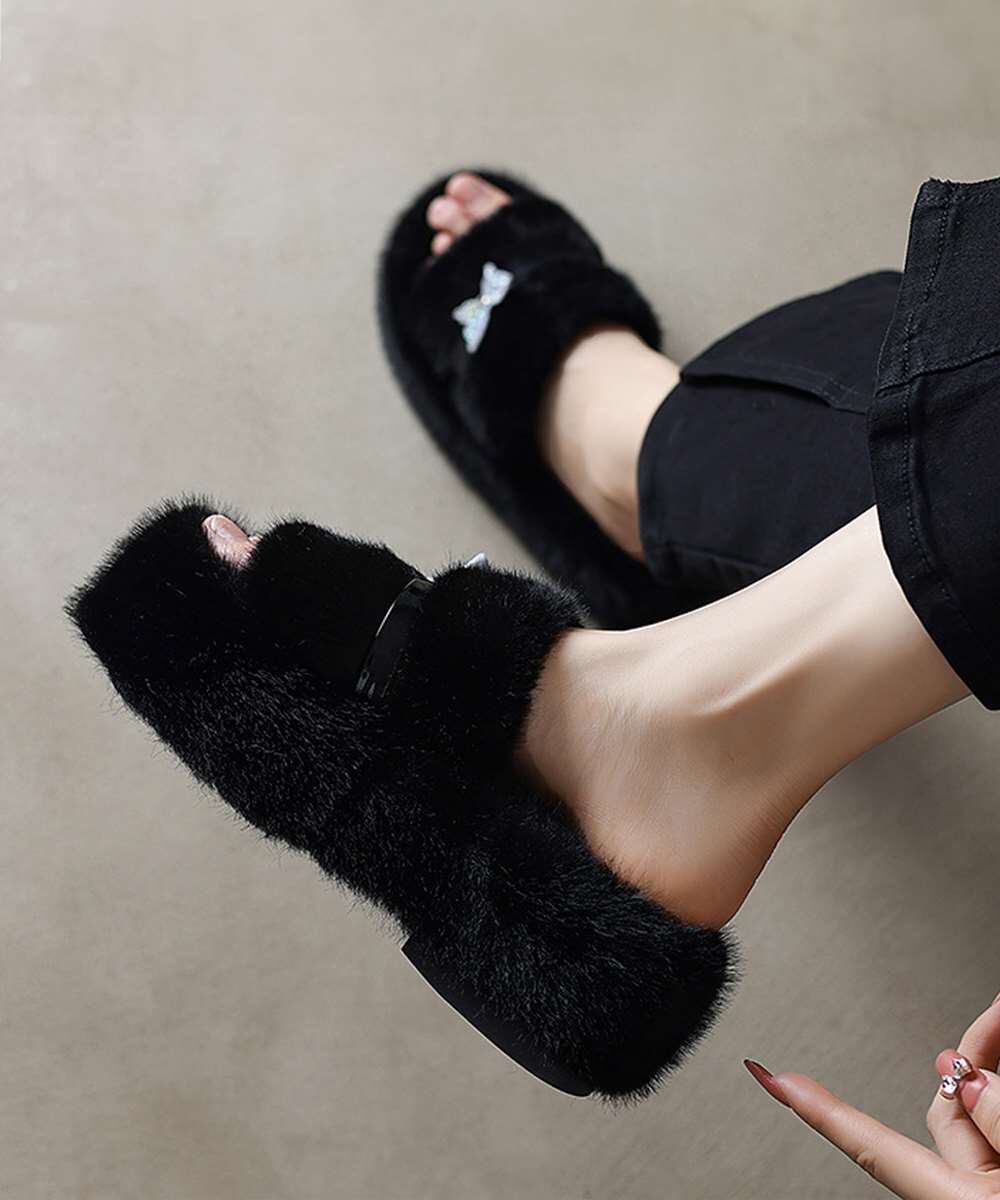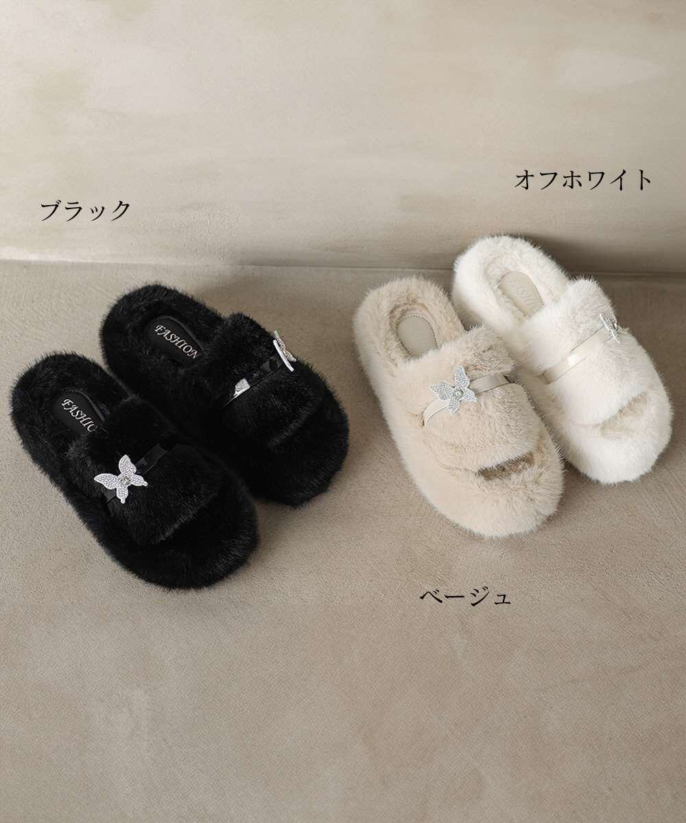シンプルなデザインで色々なスタイルに合わせられるファーサンダル。