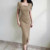 タイトなシルエットでボディラインを美しく見せてくれる半袖ワンピース。