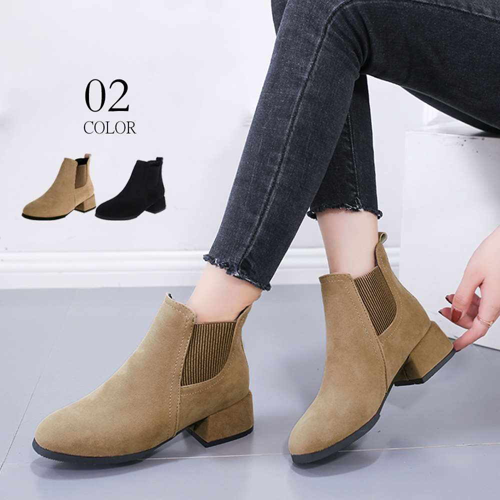 ショート ブーツ レディース ブーティ サイドゴア 太ヒール ローヒール靴 スエード