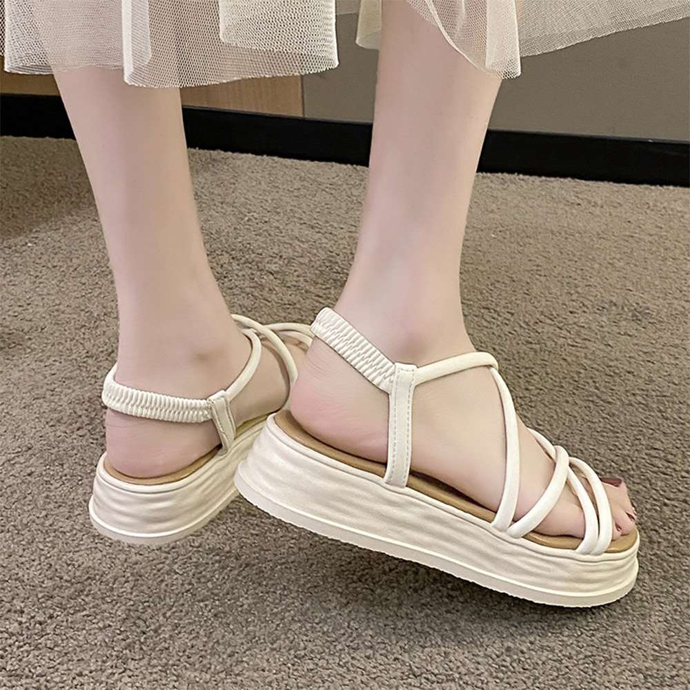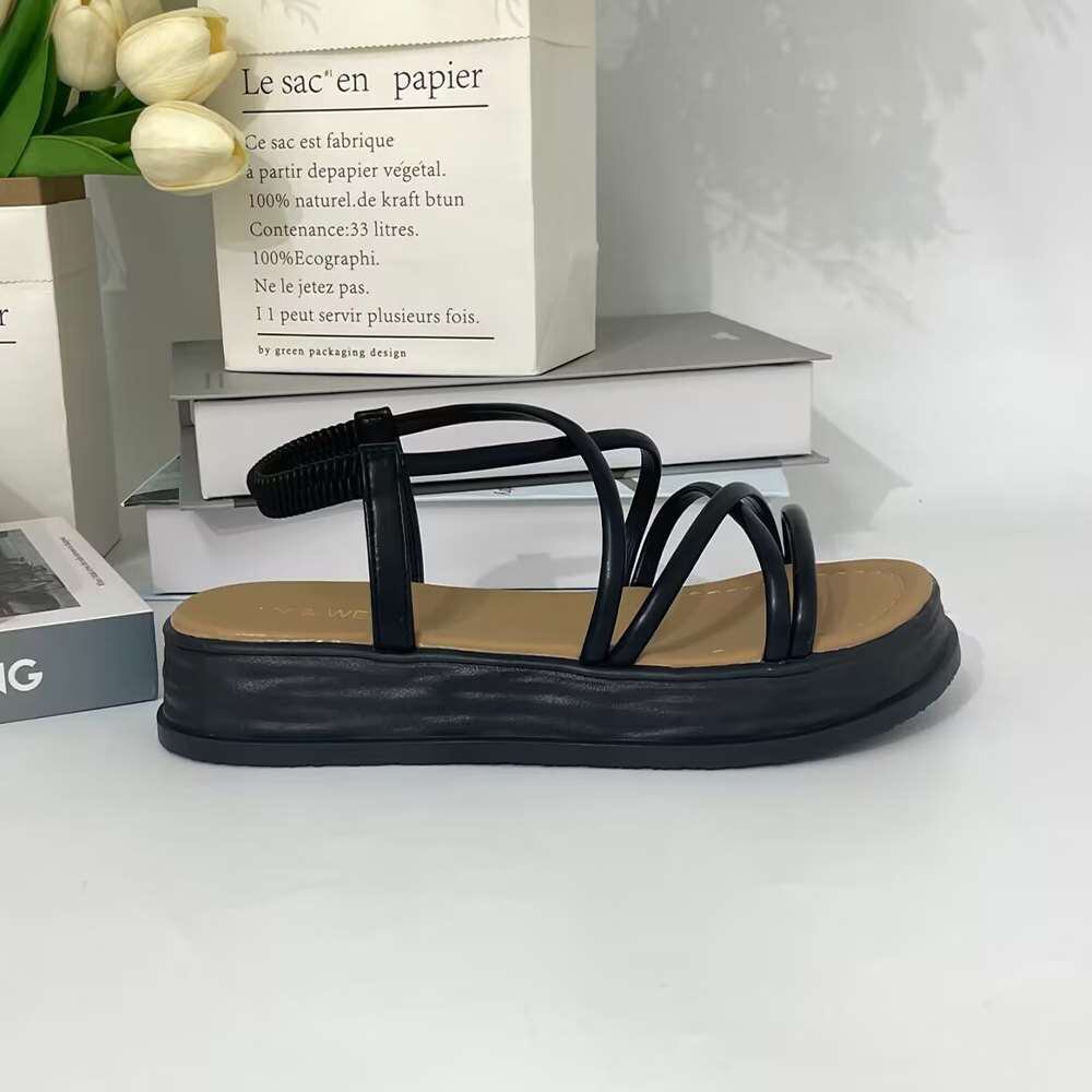 ブラックとアイボリーの2色展開、シンプルで使い勝手の良い厚底サンダルです。