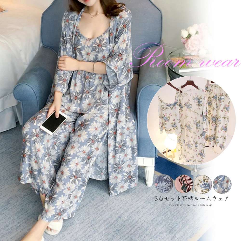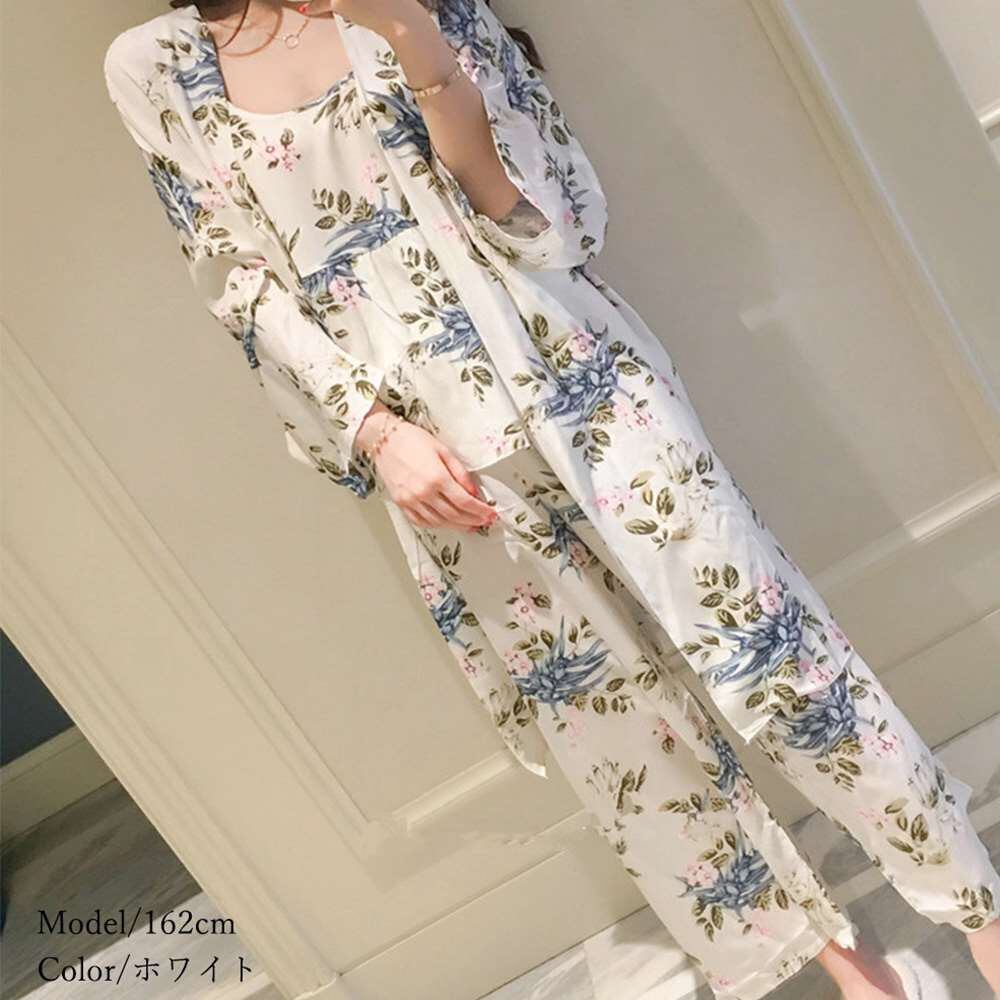 ルームウェア 3点セット レディース 花柄 パジャマ カーディガン ナイトウェア パンツ