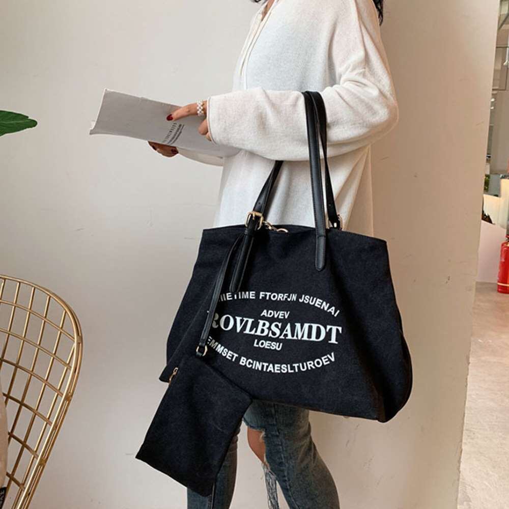 キャンバスバッグ レディース ポーチ付き トートバック 大きめ 肩掛け