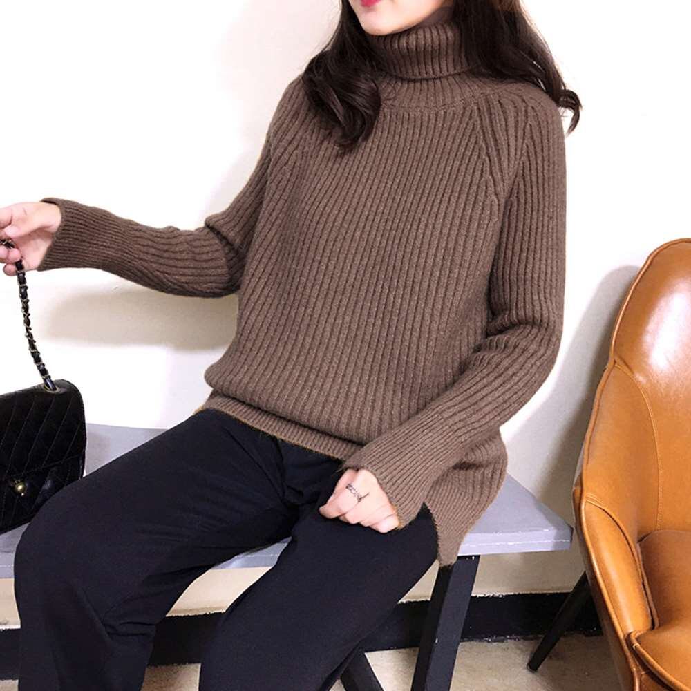 キュッと詰まった首元がエレガントさを強調してくれるタートルネックリブニットトップス