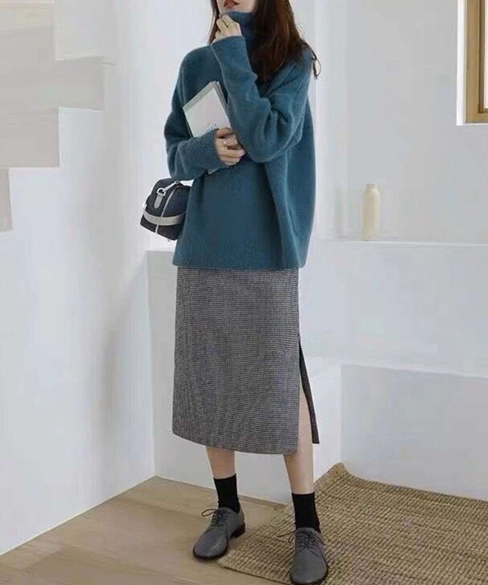 首元までしっかりとあたためてくれるタートルネックは、寒い季節に重宝まちがいなし
