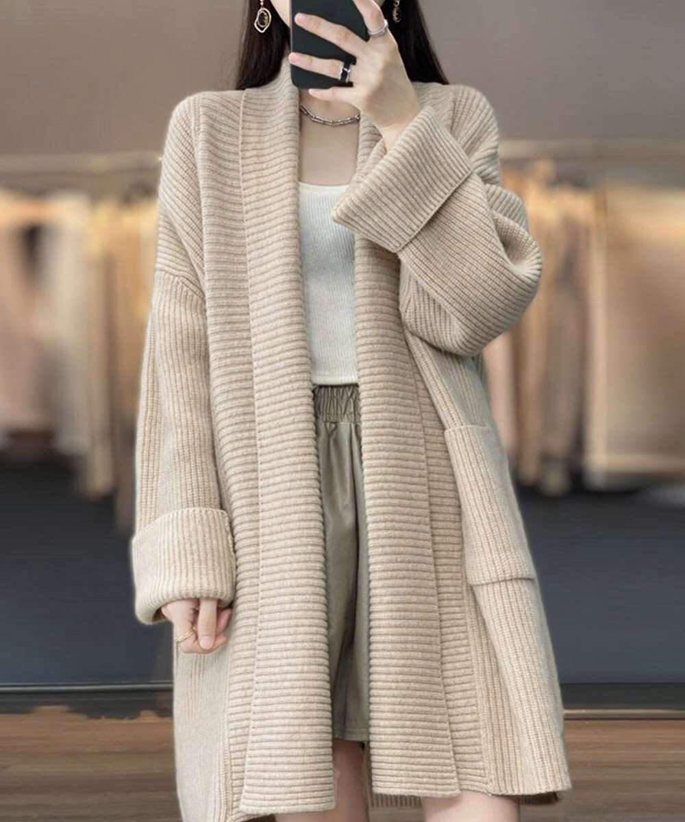 厚みのある柔らかニット生地で仕上げた、抜け感&こなれ感が溢れる韓国新作DESIGNののレディースカーディガン