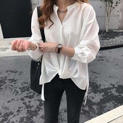 スキッパー シャツ レディース ブラウス Vネック トップス 七分袖