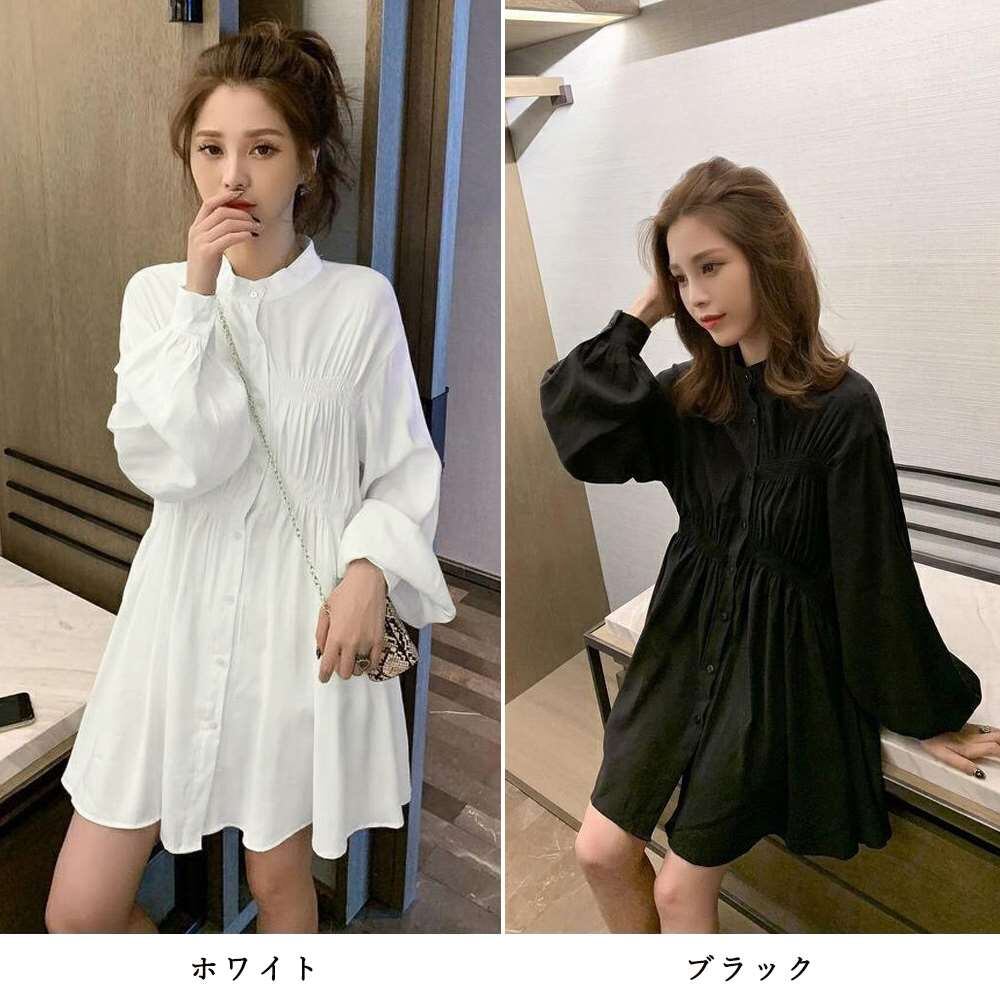 ウエストマーク シャツ ワンピース レディース チュニック 白 ミニ 長袖