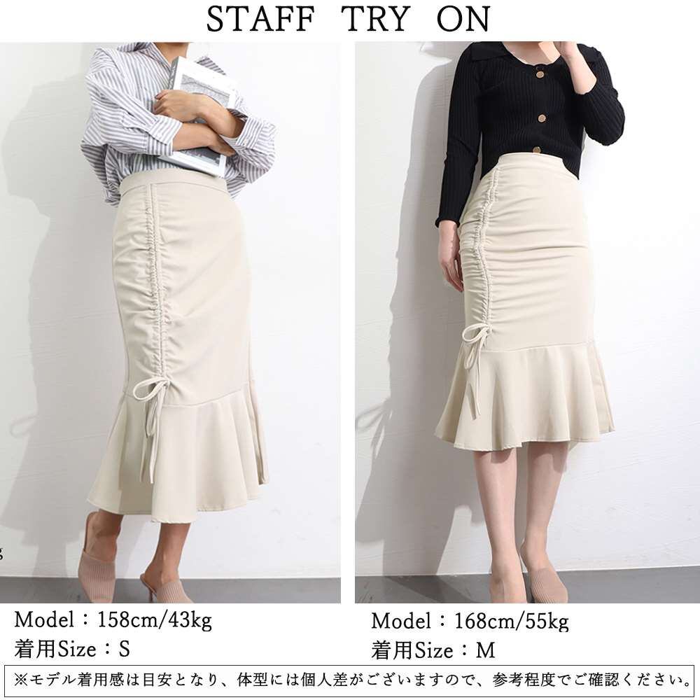 スカート ギャザー ボトムス上品着やせ フェミニン通勤脚長