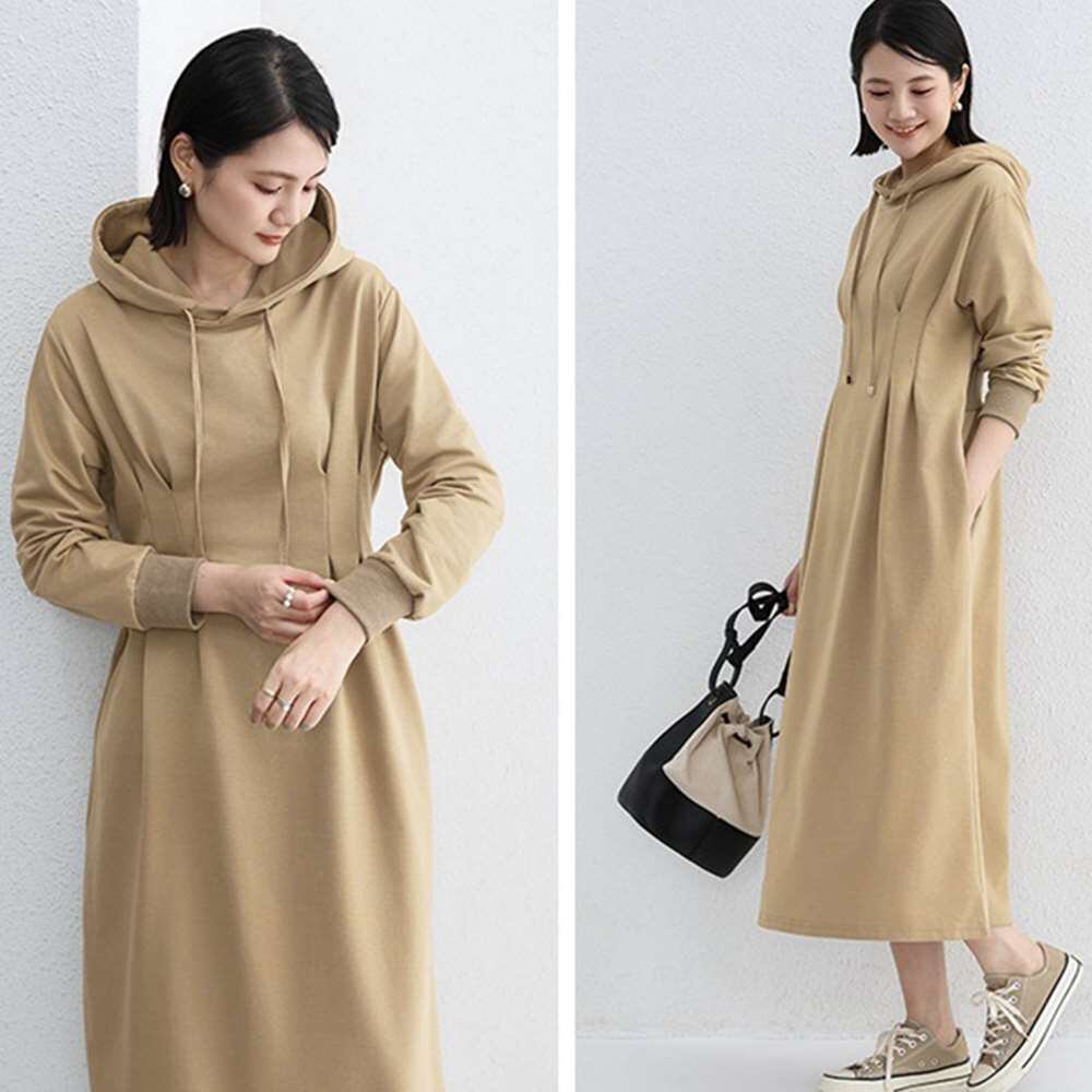 パーカーのラフさとワンピースのガーリーさが絶妙にミックスしたフーディースウェットワンピース
