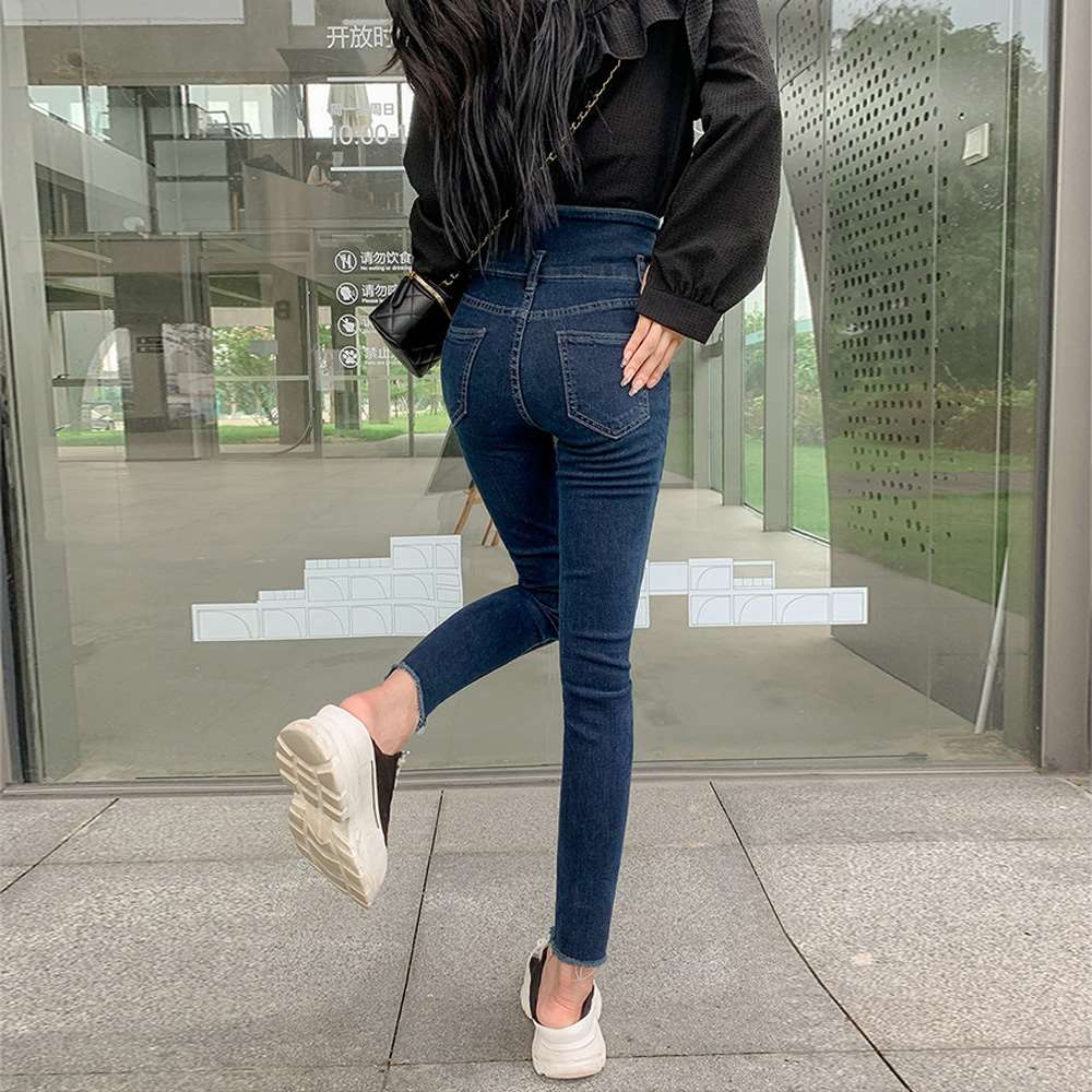 ハイウエスト&引き締め3連ボタンでキレイに魅せる、ストレッチ素材だから脚にぴったりフィットで美しいスキニーラインに