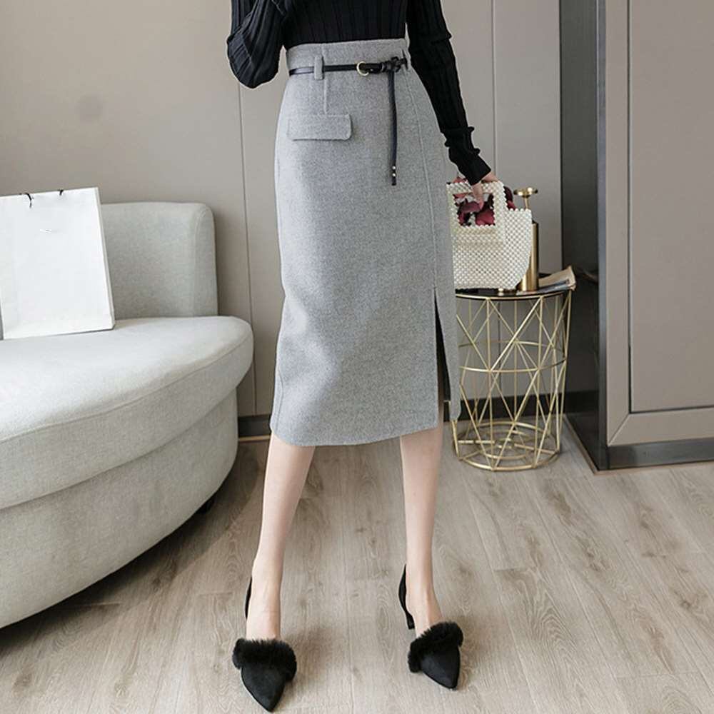 ウールライク タイト スカート 韓国