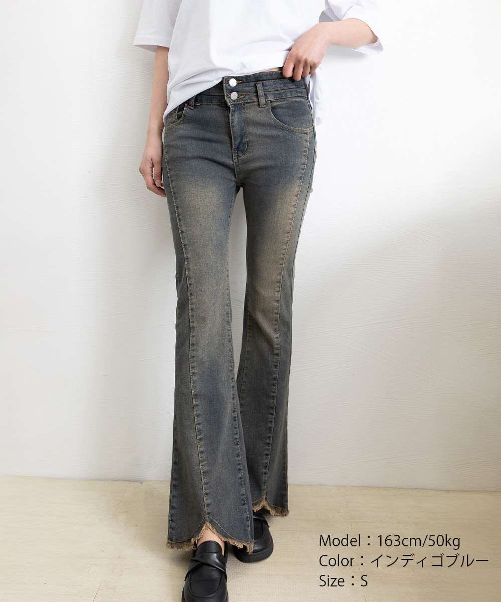 ヴィンテージライクな雰囲気で、おしゃれな大人カジュアルを演出するセミフレアデニムパンツです。
