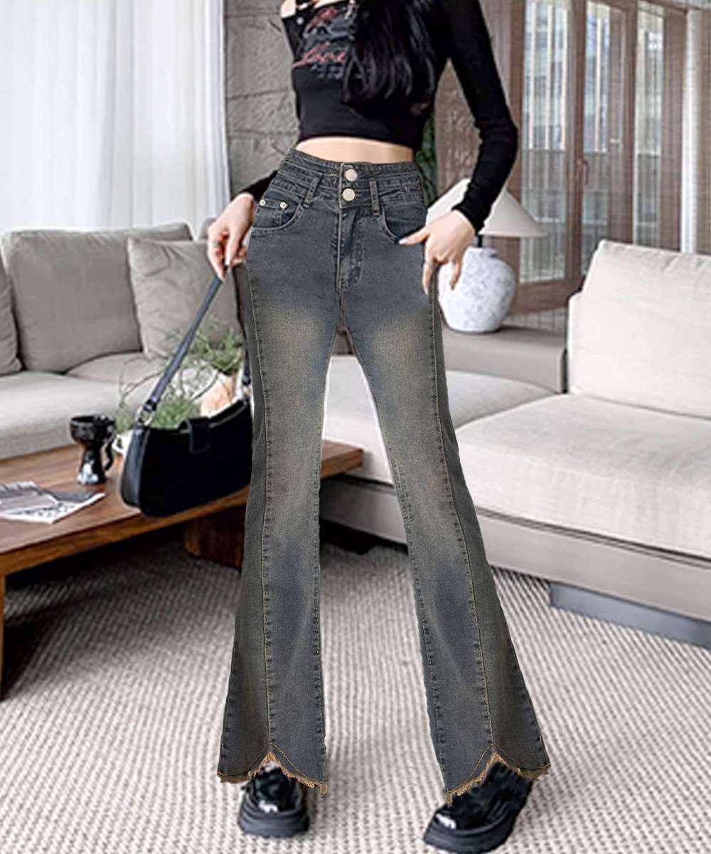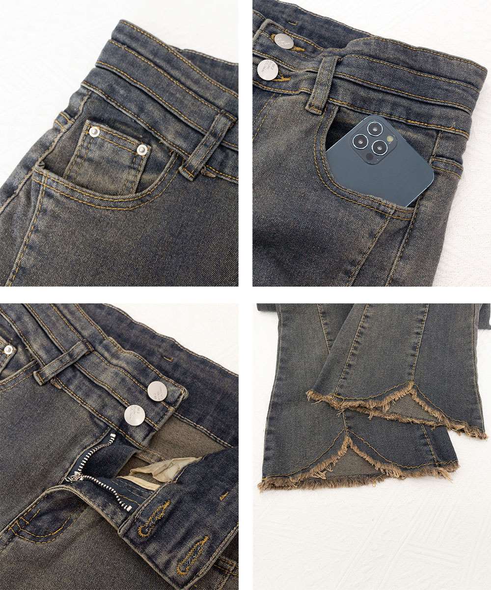 細見えデニムパンツ 美尻脚長シーズン 無地オールジーンズ