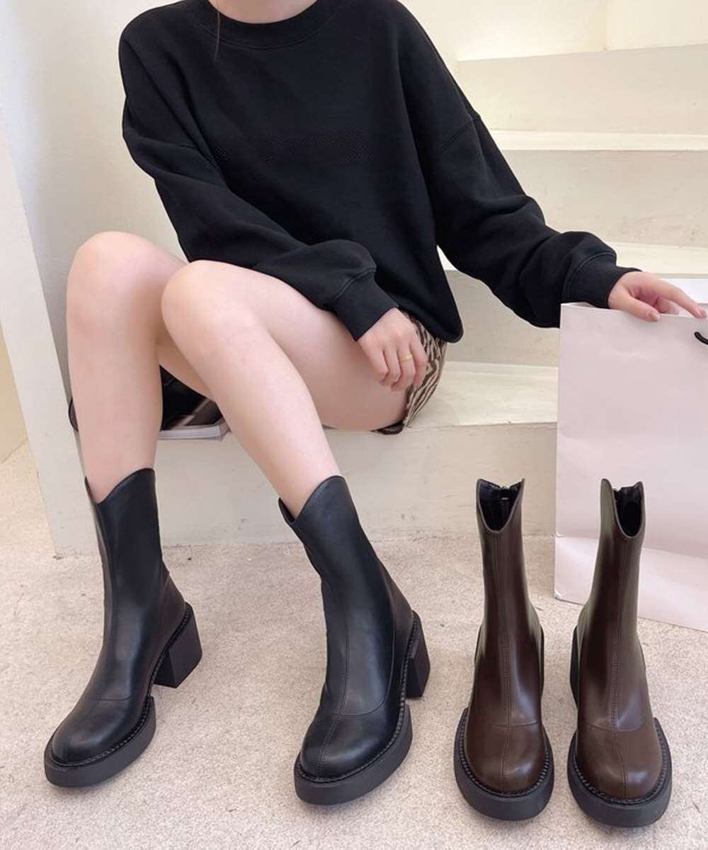 キーワード:韓国ファッション 黒ブーツ おしゃれ 歩きやすい太ヒール
