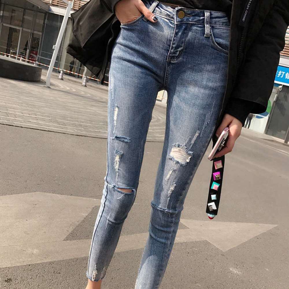 ダメージの効いたデザインが大人っぽくクールな印象を与えるウォッシュ仕様デニムパンツ