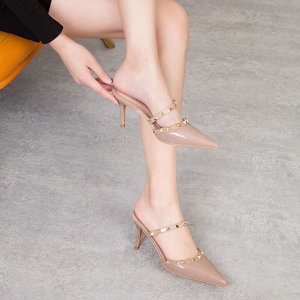 ピラミッドスタッズデザインが人目を惹いてしまうピンヒールパンプス