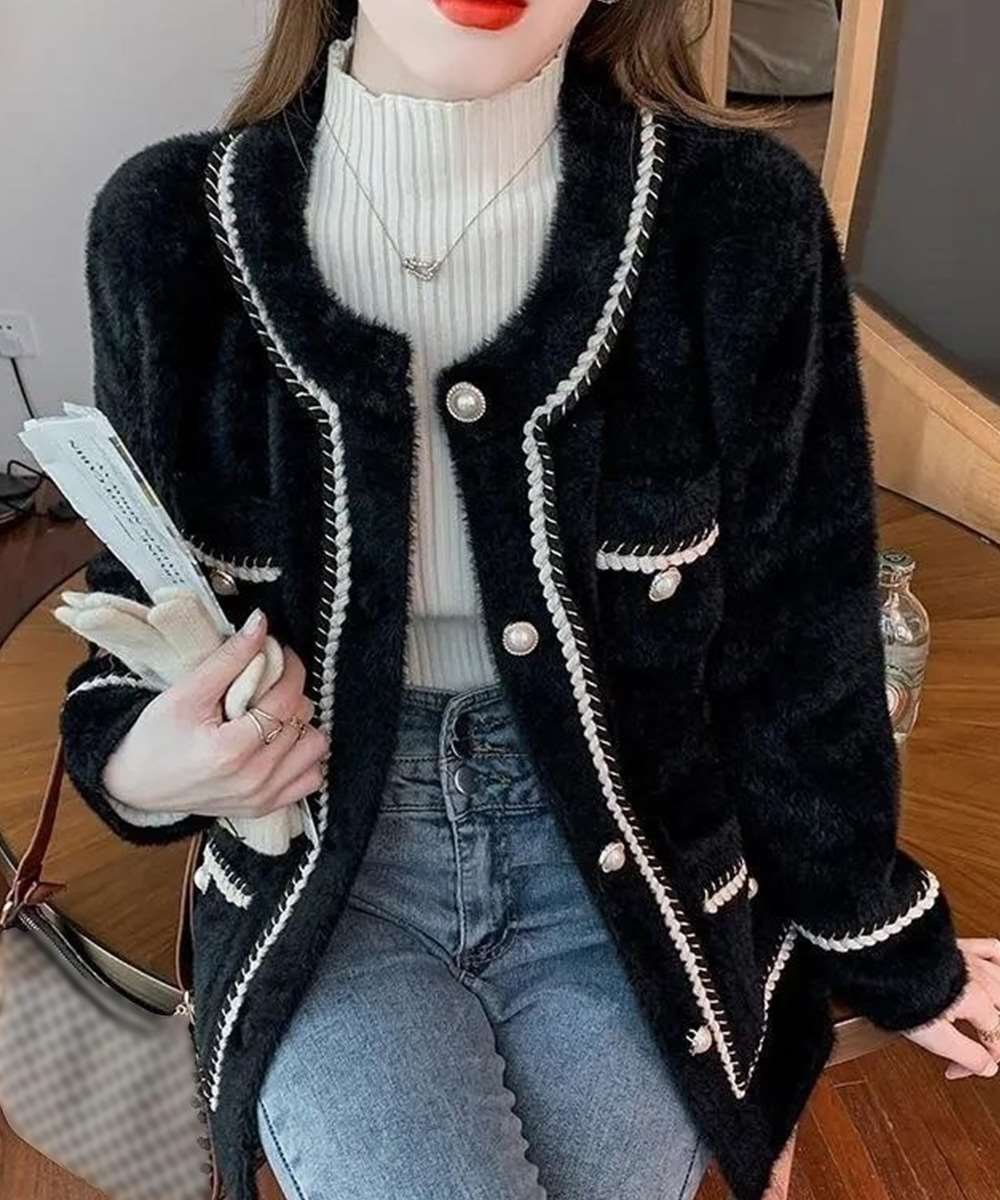 アクセントのパール風ボタンがモダンでイマドキ感たっぷり