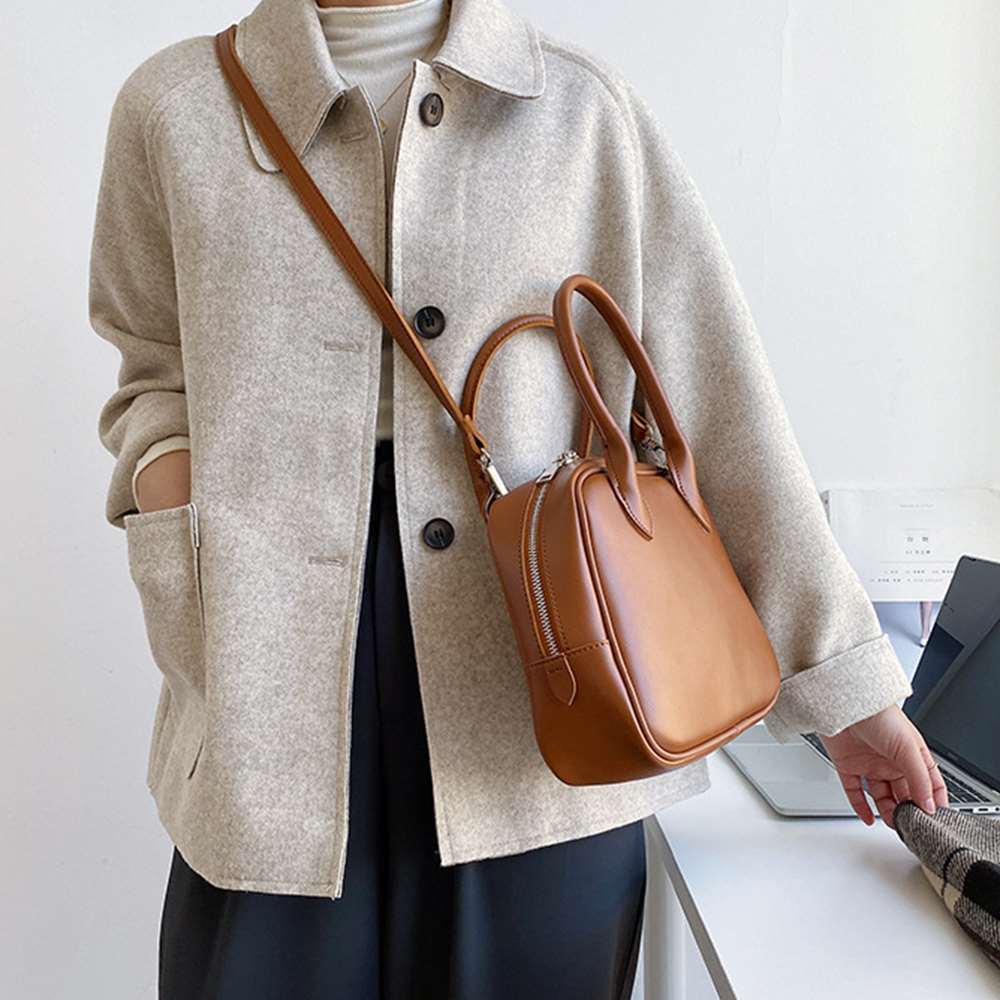 2wayスクエアボストン 斜め掛け鞄 レトロ 手提げかばん 通勤 肩掛けバッグ フェイクレザー 軽量 20代30代40代