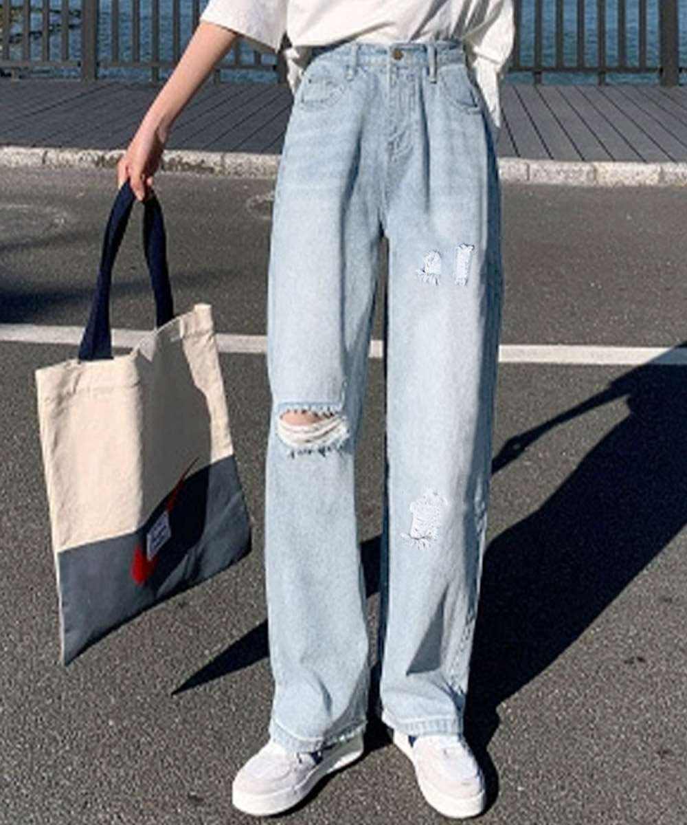 キーワード:ワイドパンツデニム ゆったり ボトムス ジーンズオルチャン