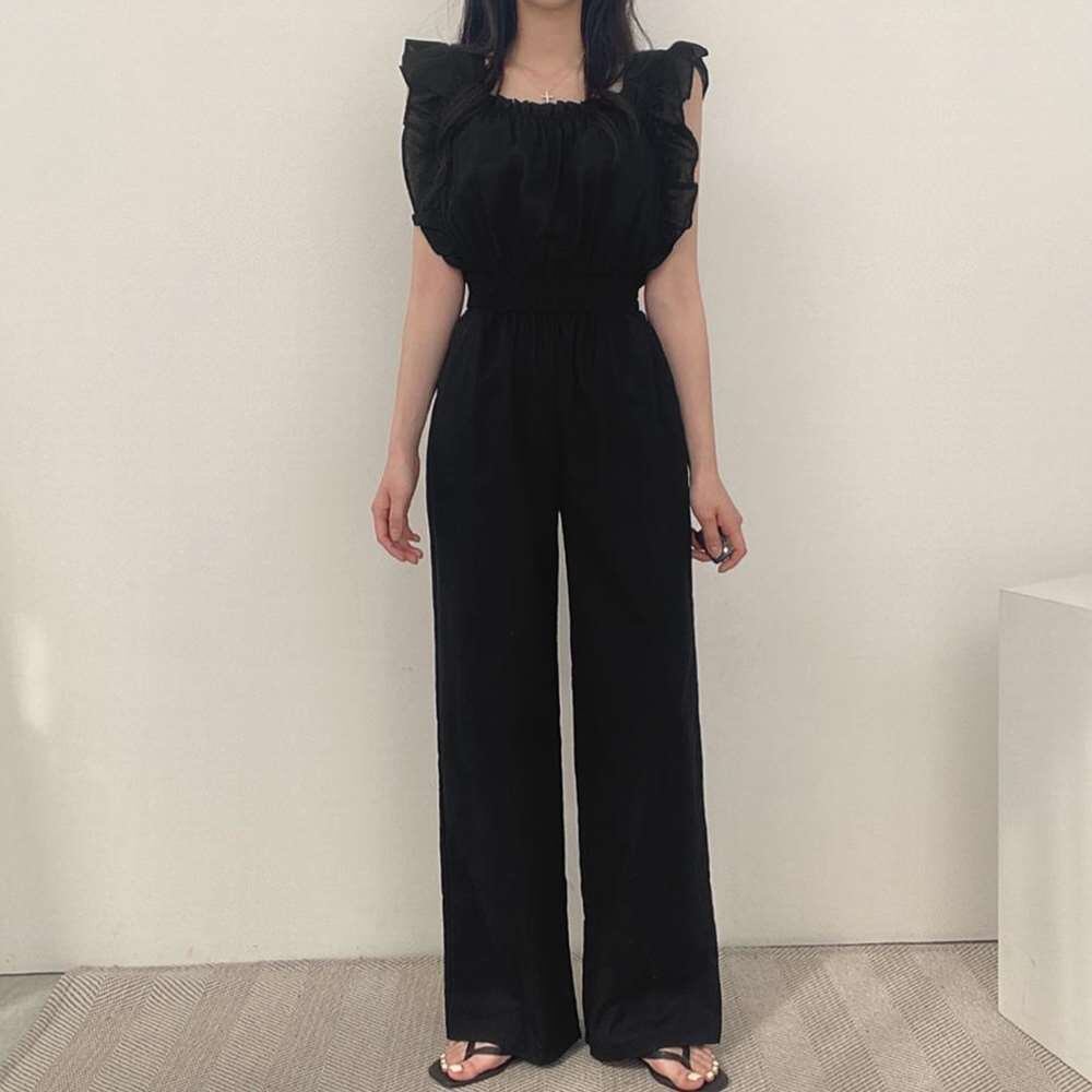 キーワード:おしゃれ服着やせ オフィスカジュアル つなぎワイドパンツ