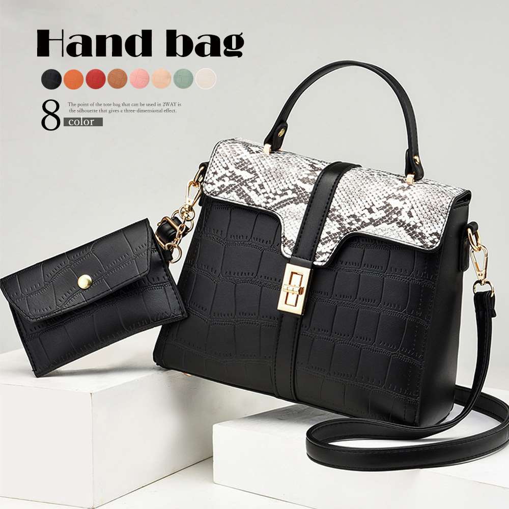 コーデのアクセント使いにピッタリなクロコ柄コインケース付きハンドバッグ