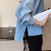 カジュアルになるすぎないレディースデニム風シャツブラウス