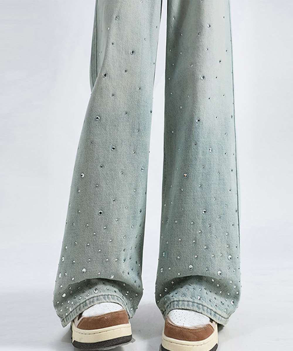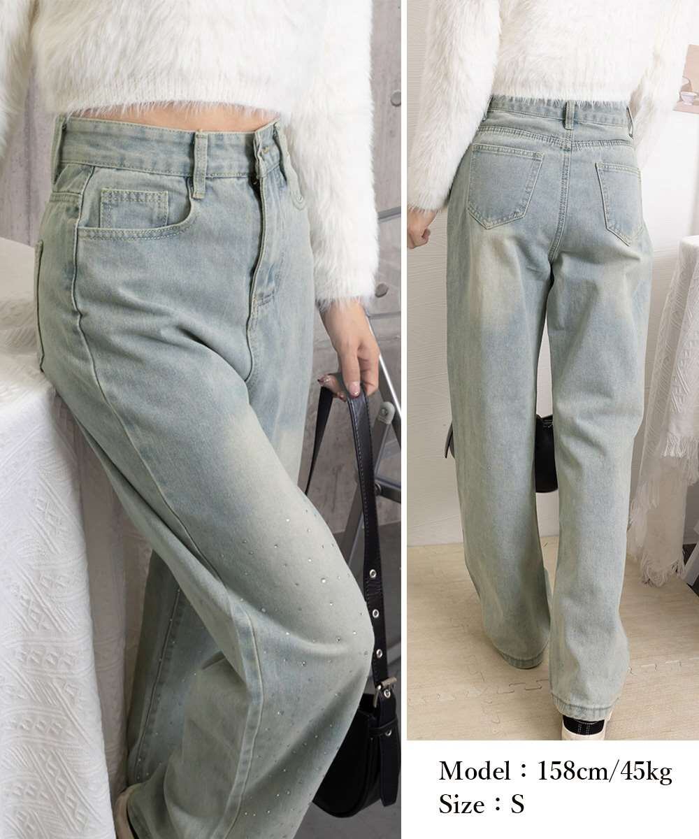 華やかなビジューを贅沢に散りばめたトレンドライクなデニムパンツ