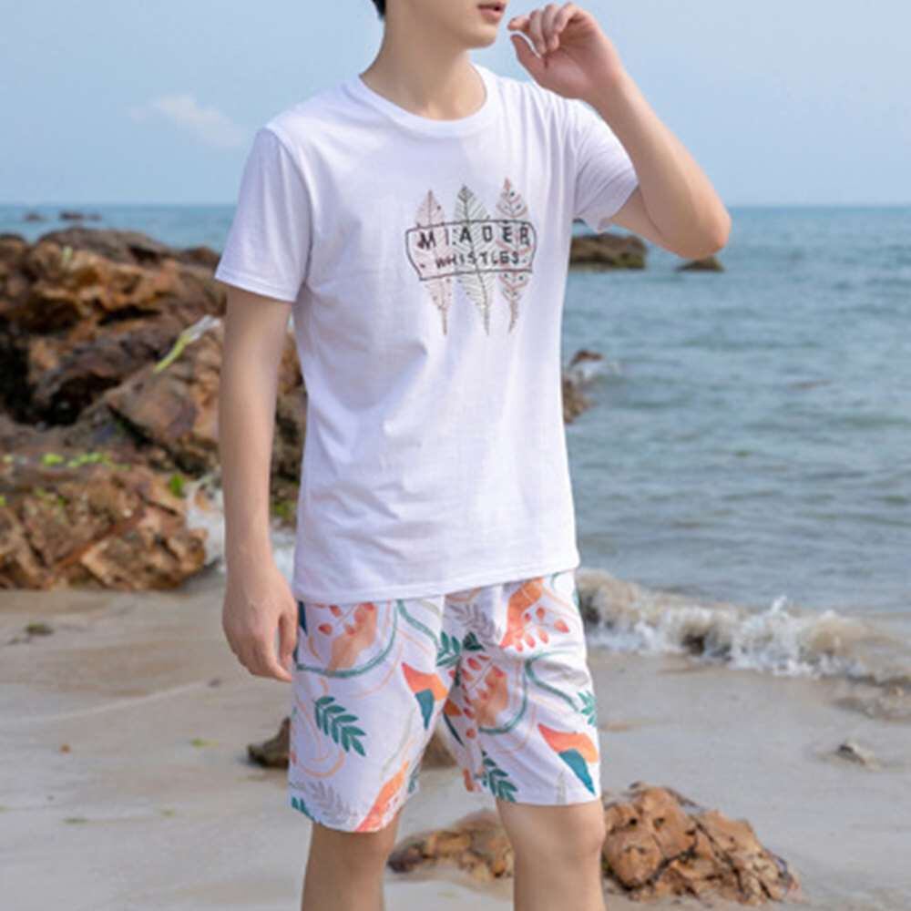 開放的なビーチでラブリールックを演出するカップルのペアルック水着