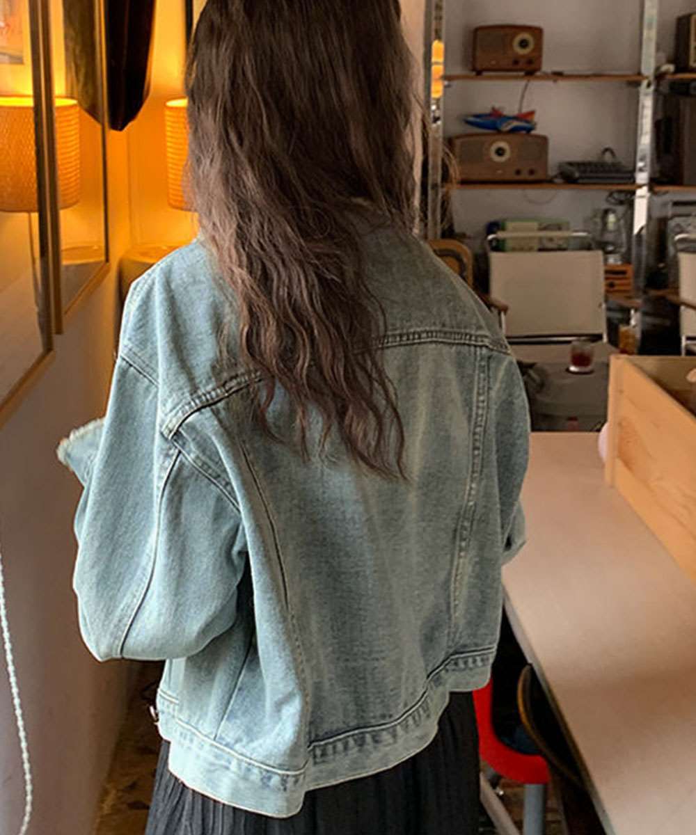 キーワード:ジャケットゆったり ジージャン 韓国風 色落ち加工 デニム