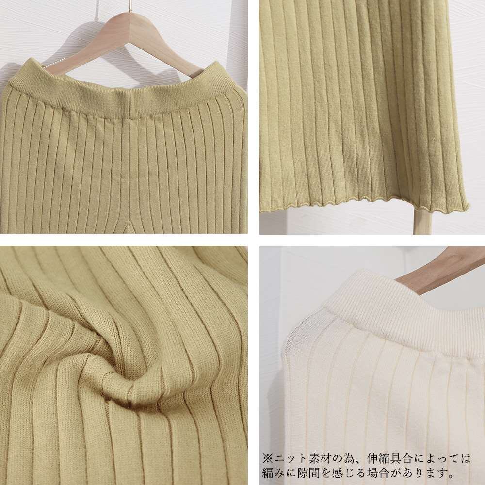 裾に向かって広がるフレアなシルエットがポイントのやや太めのリブニットパンツ