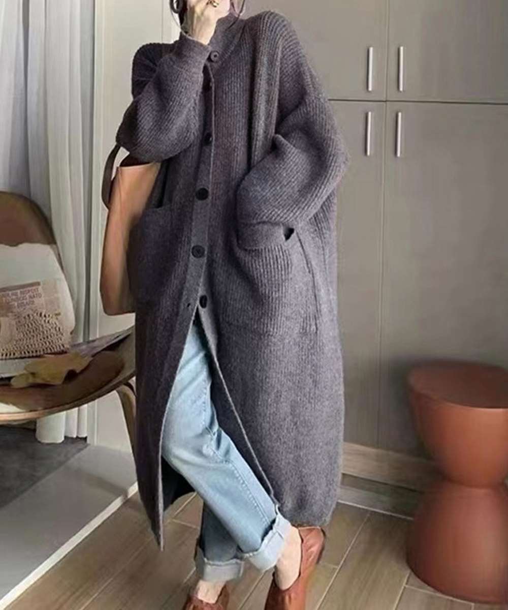 ロング ニット カーディガン 厚手 レディース